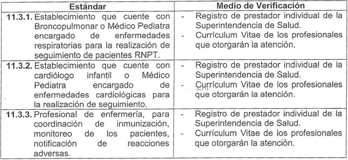 . 11. Estándares especiales para el tratamiento basado en Palivizumab para la profilaxis de la infección del Virus Respiratorio Sincicial.