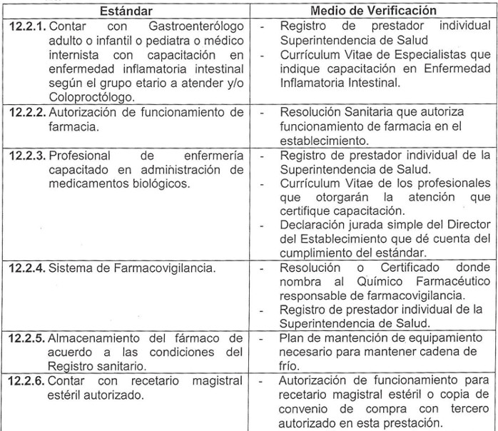 . 12. Estándares para el tratamiento basado en Infliximab o Adalimumab en la Enfermedad de Crohn grave y Enfermedad de Crohn con Fístula perianales complejas.