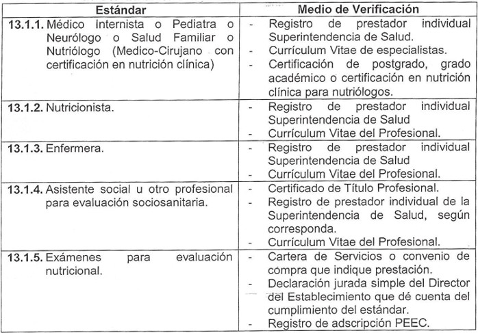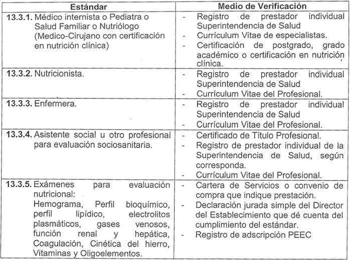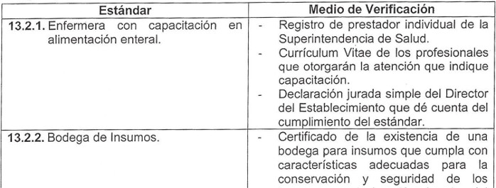. 13. Estándares para el tratamiento basado en Nutrición Enteral Domiciliaria total o parcial para personas cuya condición de salud imposibilita la alimentación por vía oral.