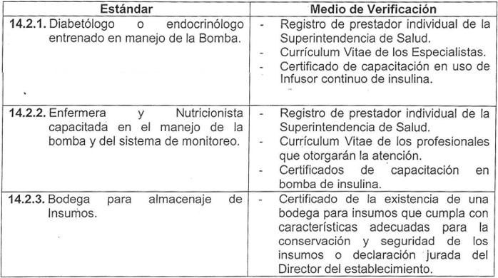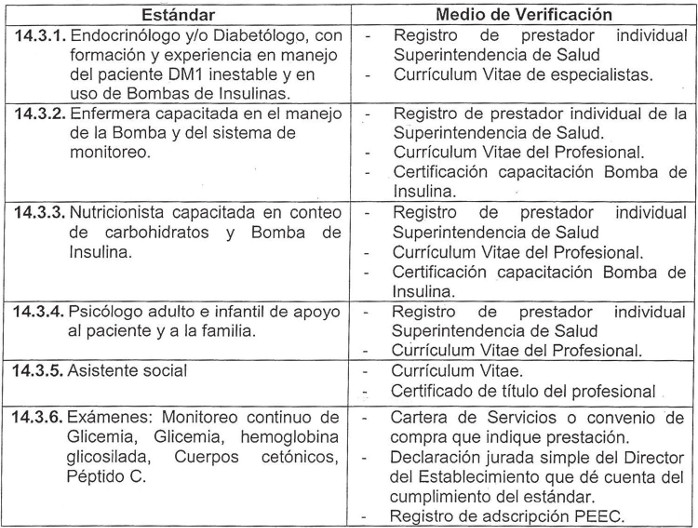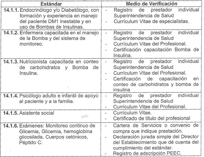 . 14. Estándares para el Tratamiento basado en la administración de insulina, a través de Infusores Subcutáneos de Insulina (bomba de Insulina) para personas con diagnóstico de Diabetes Mellitus tipo 1 inestable severa.