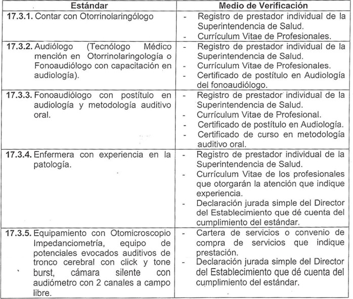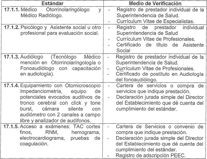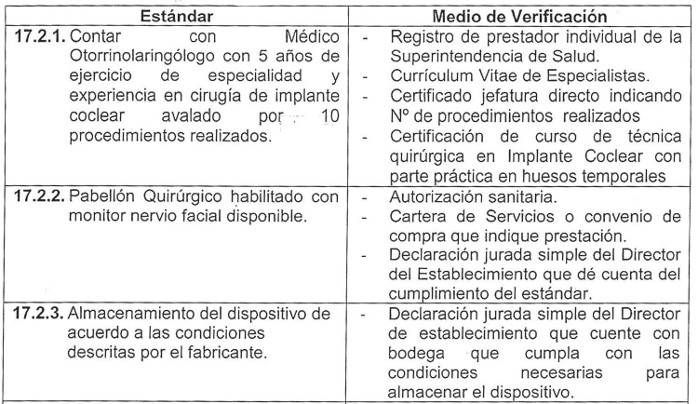 . 17. Estándares de tratamiento con dispositivo de implante Coclear unilateral en Hipoacusia Sensorioneural bilateral severa o profunda Postlocutiva.