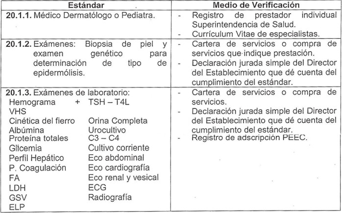 . 20. Estándares de tratamiento con dispositivos de uso médico para curaciones en Epidermolisis Bullosa Distrófica o Juntural.