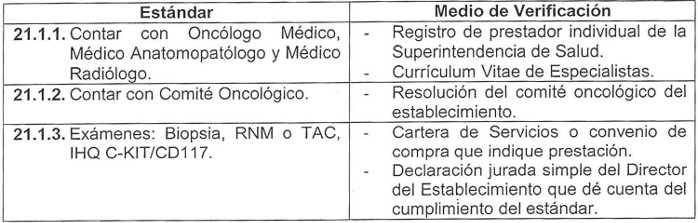 . 21. Estándares para el tratamiento con Imatinib o Sunitinib en personas con Tumores del estroma gastrointestinal no resecables o metastásicos.