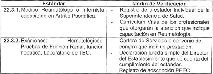 . 22. Estándares para el Tratamiento basado en Adalimumab o Golimumab o Etanercept o Secukinumab, para la enfermedad de Artritis Psoriática Refractaria a Tratamiento Habitual.