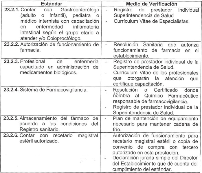 . 23. Estándares para el tratamiento basado en Golimumab o Adalimumab para personas con Colitis Ulcerosa moderada e Infliximab en personas con Colitis Ulcerosa grave.
