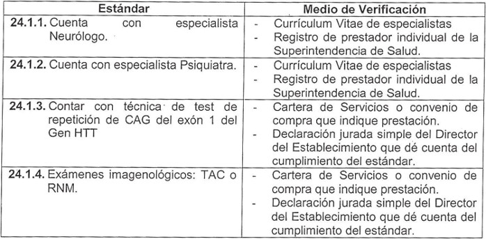 . 24. Estándares para el Tratamiento con Tetrabenazina para la corea en personas con Enfermedad de Huntington.