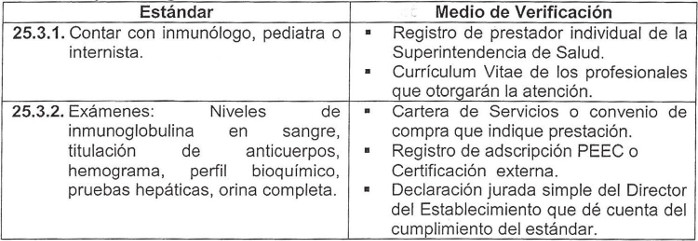 . 25. Estándares para el Tratamiento con inmunoglobulina G en personas con Inmunodeficiencias Primarias.