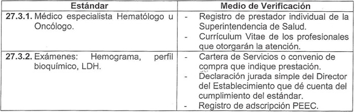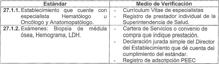 . 27. Estándares para el Tratamiento basado en Ruxolitinib en personas con Mielofibrosis.