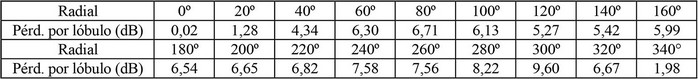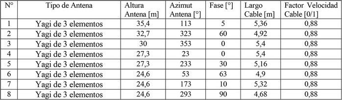 - Arreglo de antenas de acuerdo a la siguiente tabla: