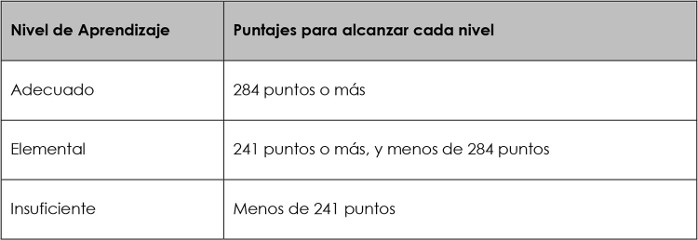 (1) Esto significa haber consolidado aquellos aprendizajes considerados fundamentales debido a que permiten transitar hacia aprendizajes más complejos. El logro satisfactorio no implica necesariamente alcanzar todos los Objetivos de Aprendizaje estipulados en el Currículum vigente, ya que los Niveles de Aprendizaje son pasos o escalones intermedios por los que se transita hacia el logro de lo propuesto en dicho Currículum y que permiten evaluar qué tan cerca o lejos se está de alcanzarlo.