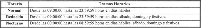Asimismo, establézcanse, los siguientes tramos horarios: