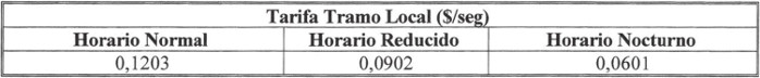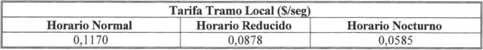 El nivel de la tarifa del Servicio Tramo Local de las comunicaciones señaladas en las letras a) y b), expresado en valores netos, es el siguiente:
