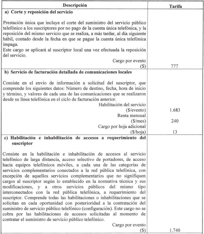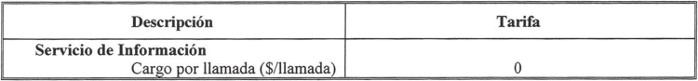 . El nivel de la tarifa del servicio asistencia de operadora de las comunicaciones señaladas en las letras a), b) y c), expresado en valores netos, es el siguiente:
