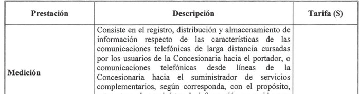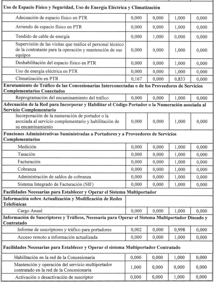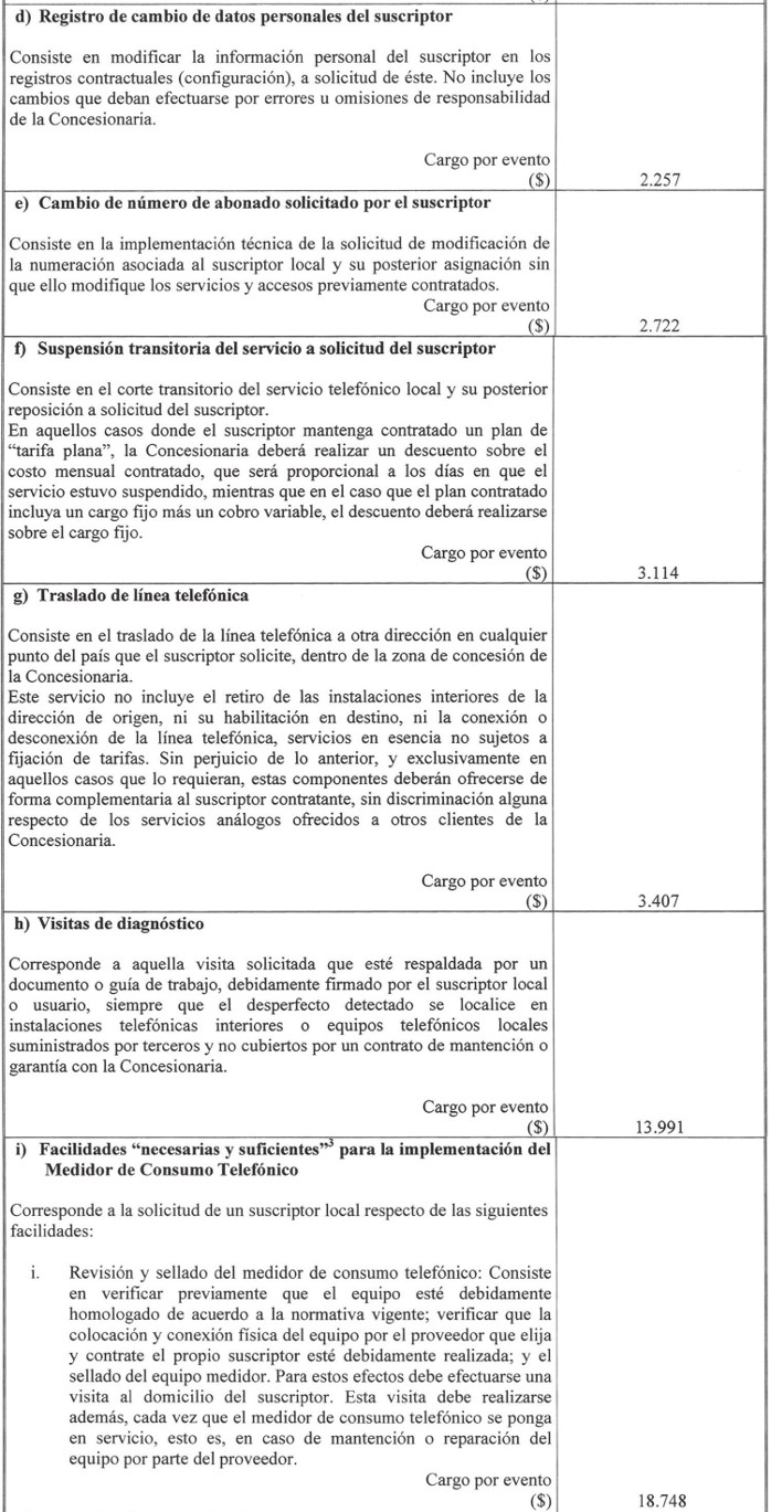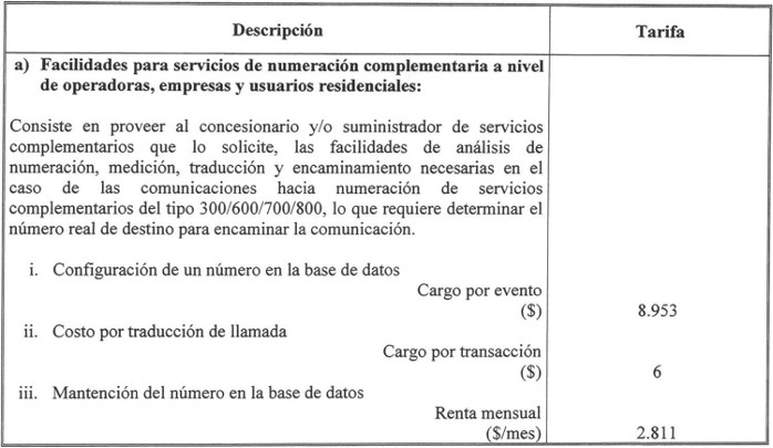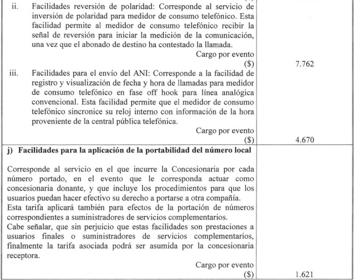 Corresponde a todas las prestaciones requeridas por las concesionarias para que las interconexiones sean plenamente operativas. Adicionalmente, en virtud del Informe N° 2, de 2009, del H. Tribunal de Defensa de la Libre Competencia, se mantiene la procedencia de fijar tarifas a estas facilidades, establecida por la ex Comisión Resolutiva mediante la resolución N° 686 de 2003, respecto de los suministradores de servicios complementarios conectados a la red de la Concesionaria a nivel de PTR.
