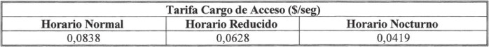 El nivel de las tarifas de Cargos de Acceso, expresados en valores netos, es el siguiente: