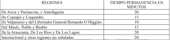 Artículo 38 Entretanto la Municipalidad no apruebe el Manual de Operaciones a que se refiere el artículo 37 de esta ordenanza y con el fin de procurar un mejor uso de los andenes de embarque se fijarán de acuerdo a su destino, los siguientes tiempos de permanencia: