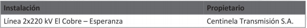 1.3 AMPLIACIÓN EN S/E CENTINELA Y SECCIONAMIENTO LÍNEA 2X220 KV EL COBRE - ESPERANZA