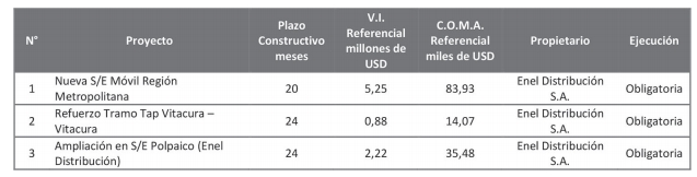 Tabla 3: Obras de Ampliación del Sistema de Transmisión Zonal del Sistema A