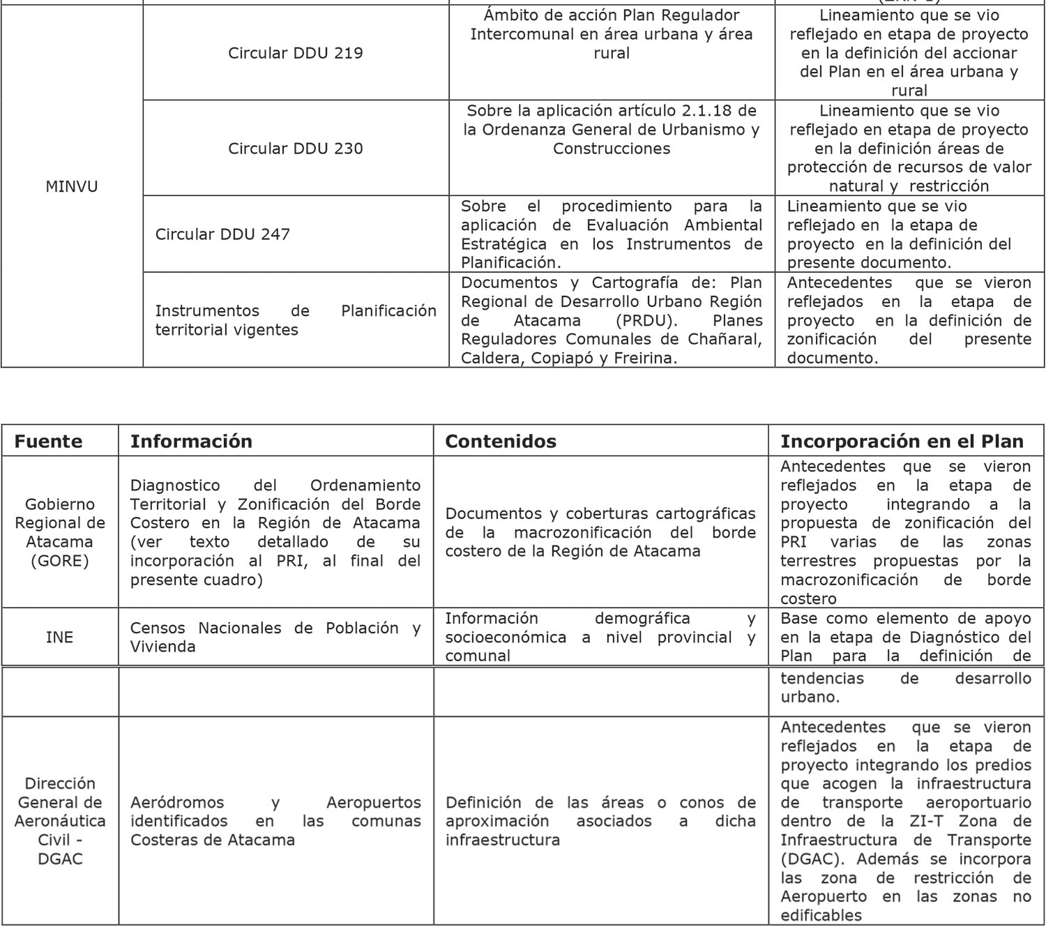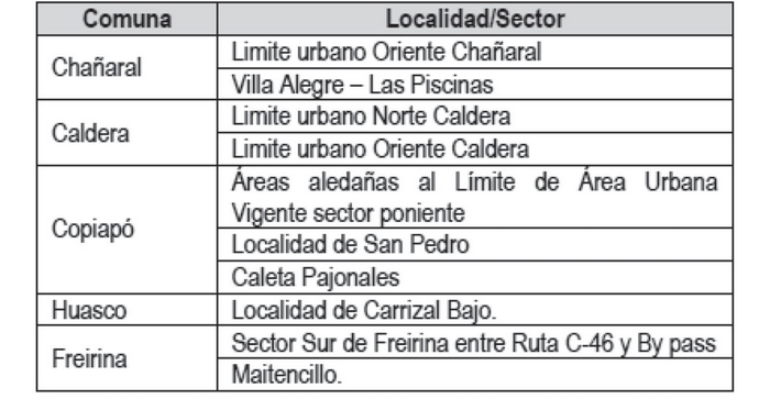 - Los Oficios N° 101 de fecha 15.04.2013 y N° 151 de fecha 03.06.2013 de la División de Planificación del Gobierno Regional de Atacama (DIPLADE), a través de los cuales informa el estudio del área denominada "Medanoso" y solicita incluir la zona como AR4 y de Erosión Acentuada en el Instrumento.