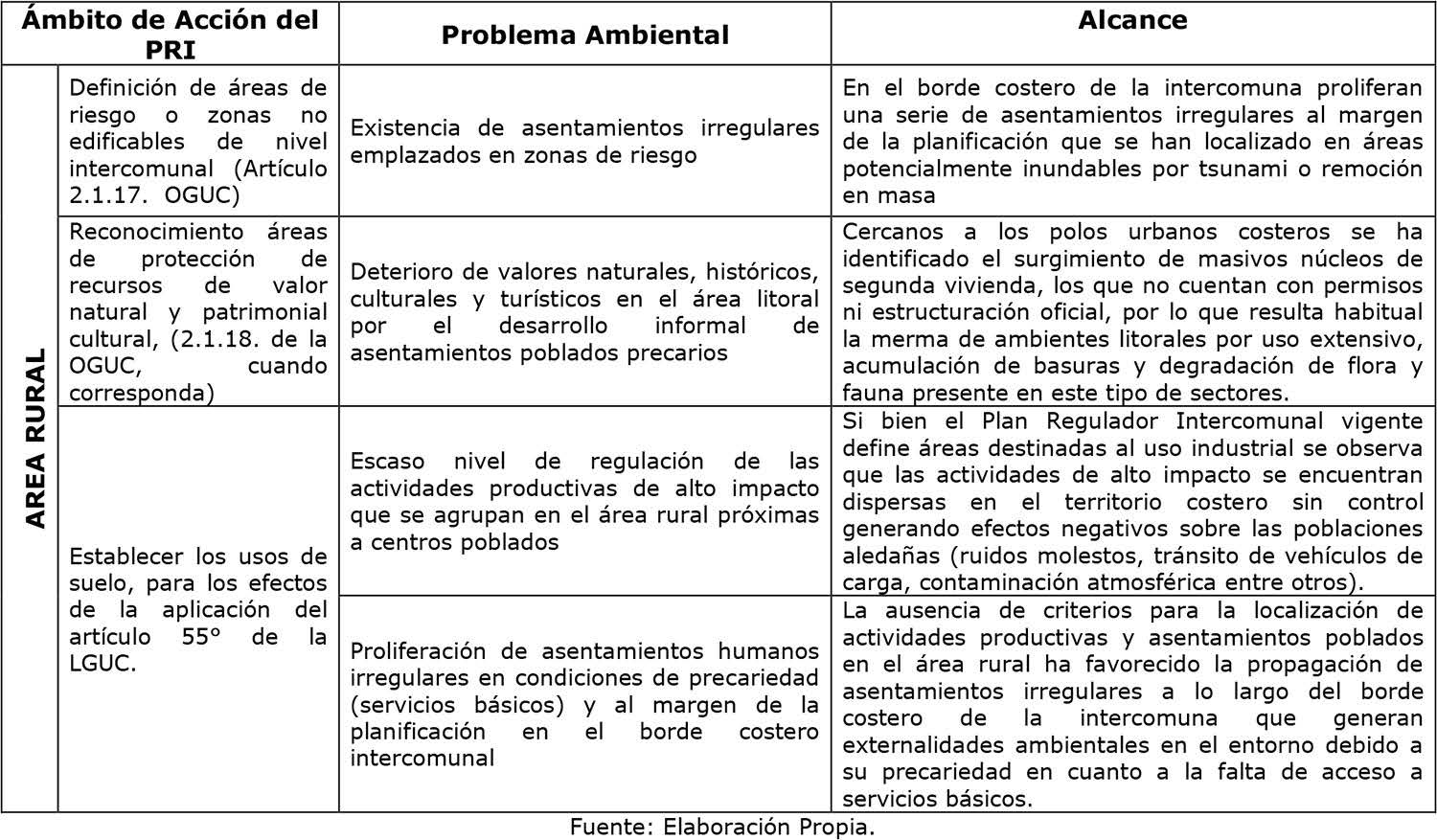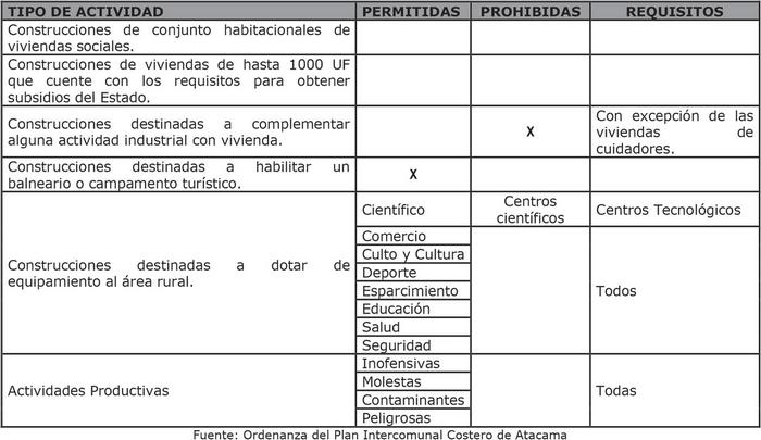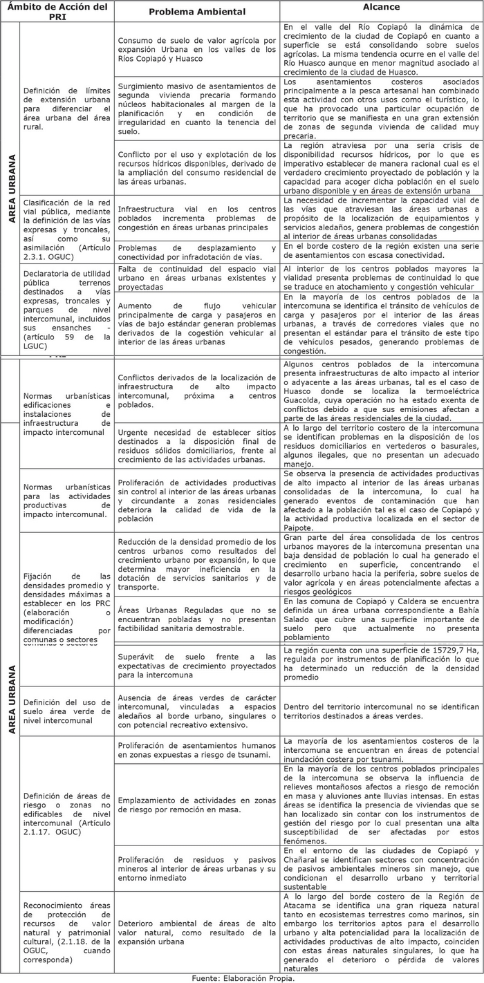 Cabe anotar que el territorio de planificación se encuentra dentro del contexto del Plan Regulador Intercomunal Costero de Atacama vigente desde el año 2001 (Res. N°5 del 2 de abril de 2001), sin embargo dicho instrumento se encuentra desactualizado en cuanto a la delimitación y definición normativa de sus áreas respectivas, lo cual genera dificultades en la toma de decisiones respecto a las actuales exigencias de uso en el borde costero. En este sentido la coexistencia de actividades productivas e infraestructura de alto impacto intercomunal, en el territorio costero de la Región, de acuerdo a la definición efectuada por la legislación urbana, justifica (entre otros aspectos) la actualización del instrumento de planificación intercomunal, estableciendo normas claras dentro de su ámbito de competencias, que regulen el uso del suelo costero de las comunas de Chañaral, Caldera, Copiapó, Huasco y Freirina, en el territorio urbano y rural.
