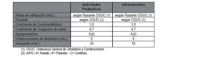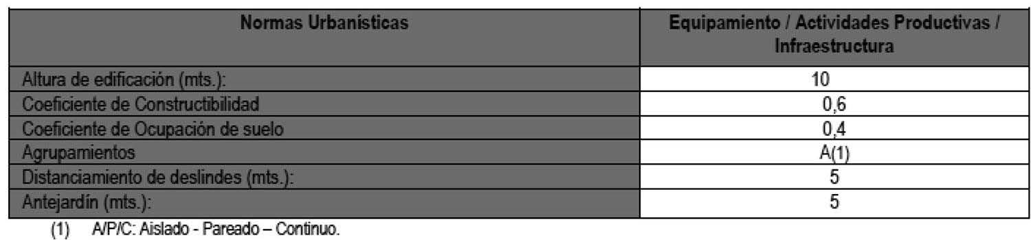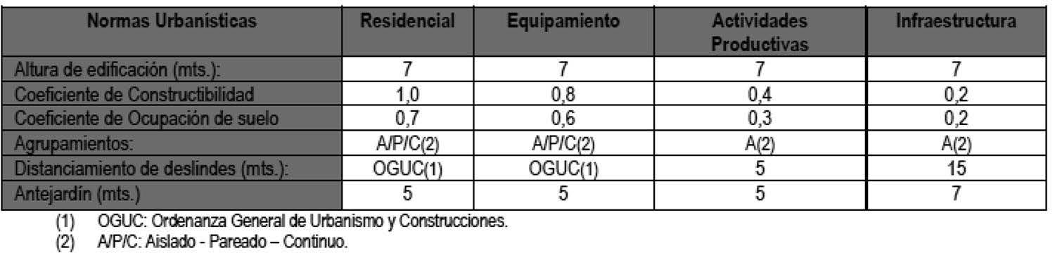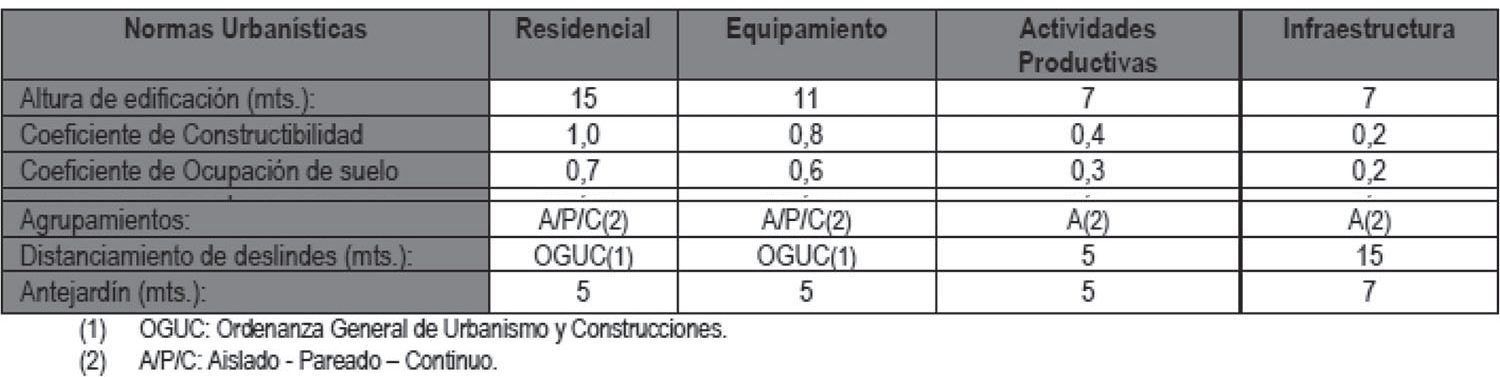 Las normas urbanísticas que aplicarán en estas áreas cuando se cumpla con los requisitos que establece la Ordenanza General de Urbanismo y Construcciones, serán las siguientes: