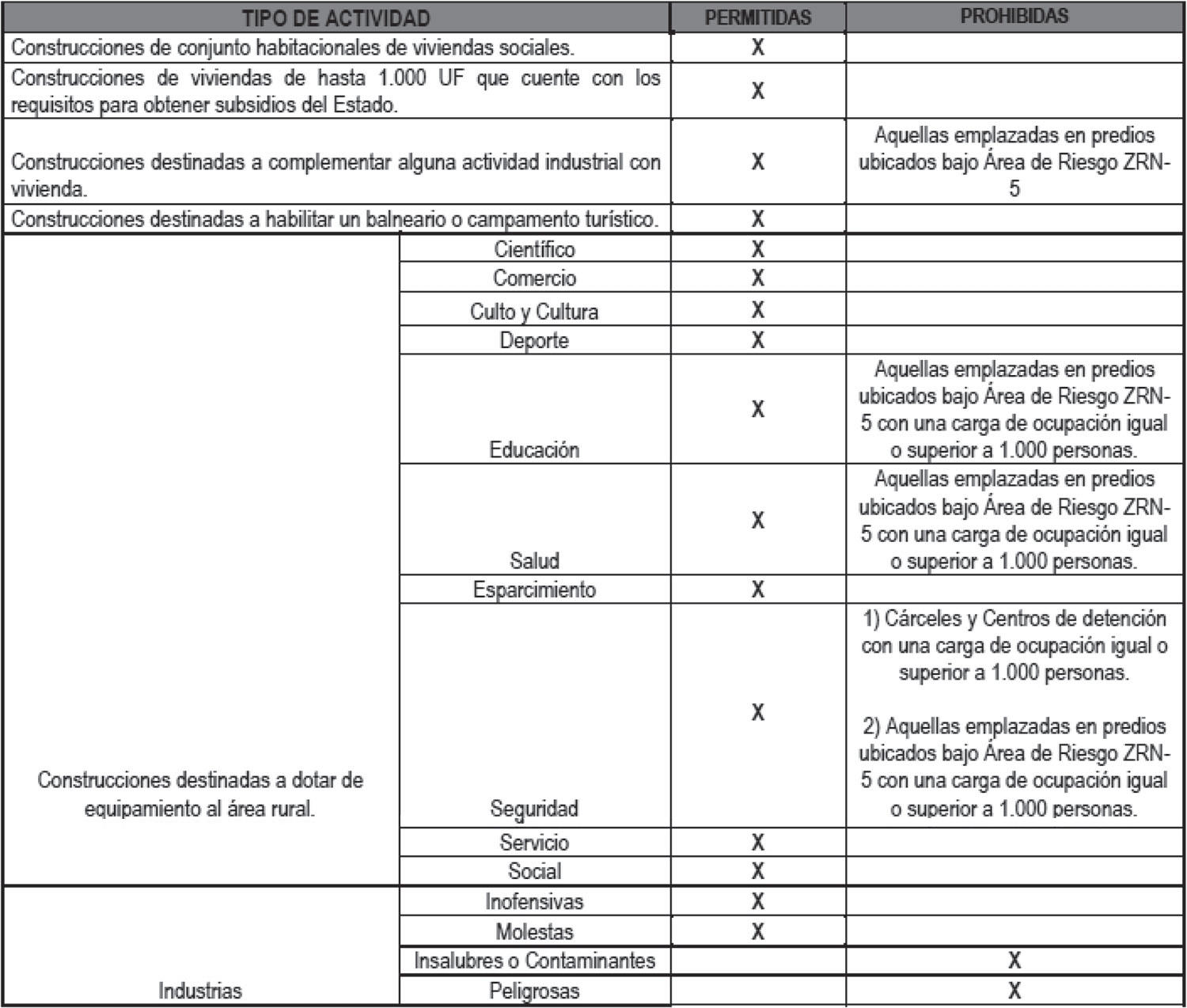Artículo 5.2-1 Zonas o terrenos con riesgos generados por la actividad o intervención humana ZRN-1