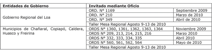 - Ord. N° 1003 de fecha 25.10.2012, de la Ilustre Municipalidad de Caldera, en el marco de la consulta pública referente a la Actualización del Plan Regulador Intercomunal Costero de Atacama.