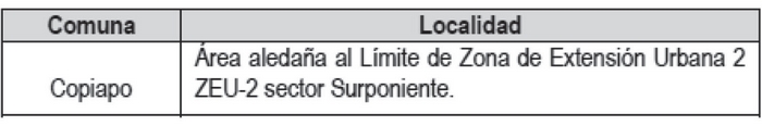 - El Oficio N° 3087 de fecha 12.08.2013, mediante el cual la SEREMI de Bienes Nacionales, solicita incorporar y modificar la Zona Industrial ZEI2 al oriente de Caldera con el fin de reponer la superficie modificada a raíz de la Auto Destinación del "Cerro Ballena".