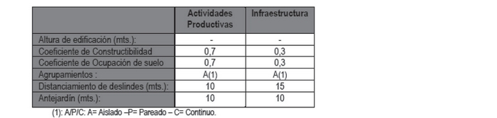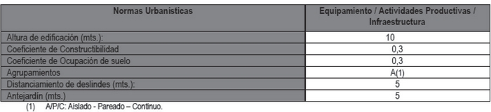e) Las normas urbanísticas que deberán cumplir las actividades productivas de impacto intercomunal.