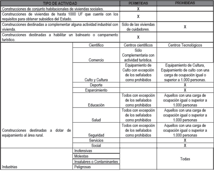 (1) En el área rural, para efectos de la aplicación del Art. 55 de la LGUC, regirán las disposiciones establecidas para el Área Rural AR-4.