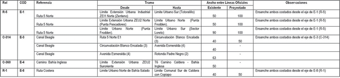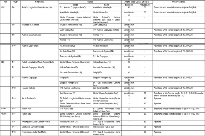 Sin perjuicio de lo anterior, cumple con hacer presente, en relación con el cuadro de vialidad troncal de la comuna de Chañaral, previsto en el artículo 4.1-1 "Red Vial Estructurante Intercomunal (Clasificación y afectaciones)", de la Ordenanza del Plan (OP), que de acuerdo con el plano PRICOST-ATAC-1, lámina 01 de 05, la Ruta C-13 en el tamo que inicia en la Ruta 5 Norte E1 termina en el "Límite Extensión Urbana Industrial ZEI1" Suroriente y no Poniente como ahí se señala.