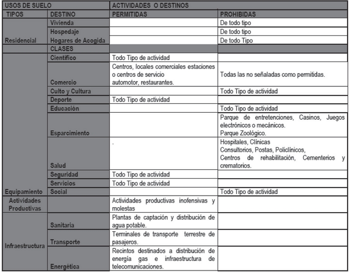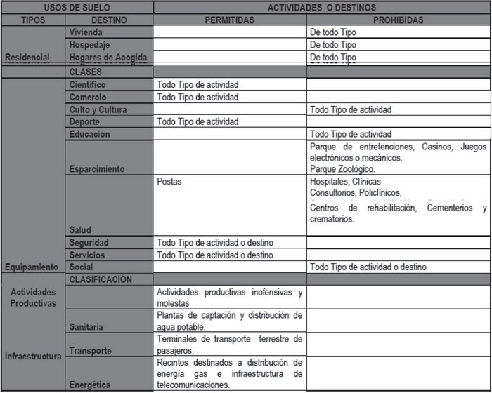 b) Usos de suelo Prohibidos