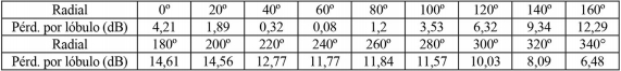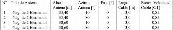 - Arreglo de antenas de acuerdo a la siguiente tabla: