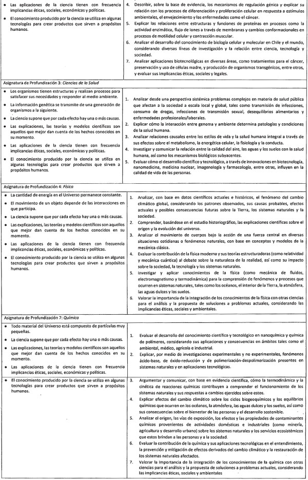 iii. Aprueban por unanimidad las siguientes asignaturas de profundización: Promoción de estilos de vida activos saludables; Ciencias del ejercicio físico y deportivo; Expresión corporal; Investigación y creación artística I; Investigación y creación artística II; Patrimonio artístico y cultura; Artes, vida y sociedad; Biología; Ciencias de la salud; Física; Química; Taller de literatura; Lectura y escritura especializada; Participación y argumentación en democracia; Comprensión histórica del presente; Geografía, territorio y desafíos socioambientales; Límites, derivadas e integrales; Probabilidades y estadística descriptiva e inferencial; Pensamiento computacional y Programación, y Geometría 3D;