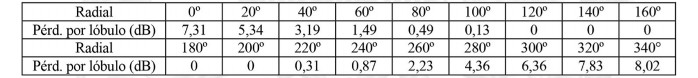- Diagrama de radiación horizontal de acuerdo a la siguiente tabla: