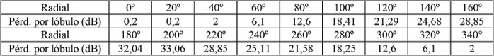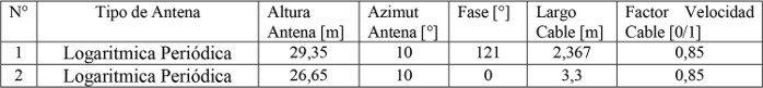 - Arreglo de antenas de acuerdo a la siguiente tabla: