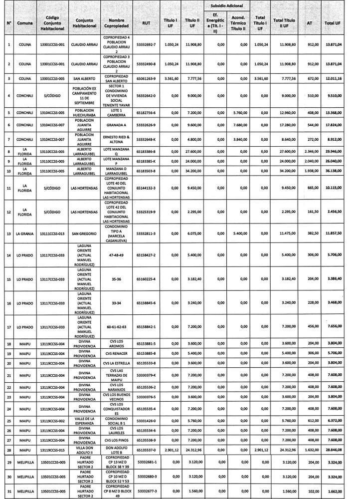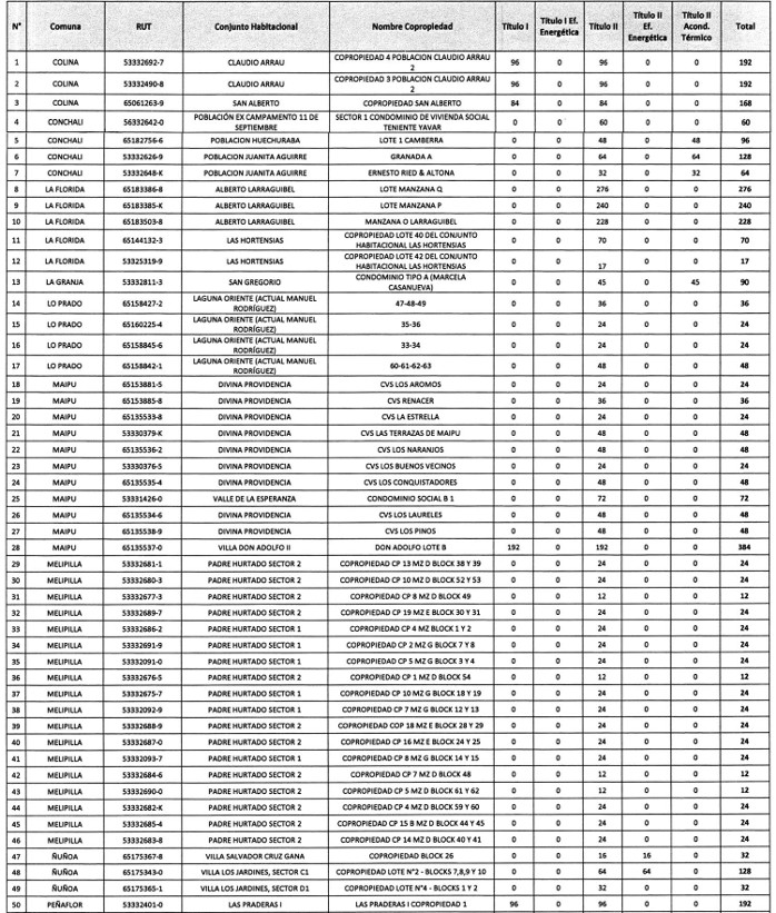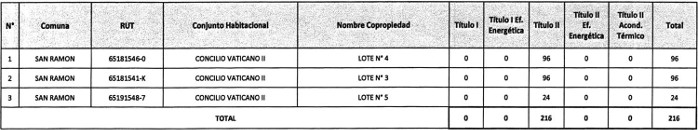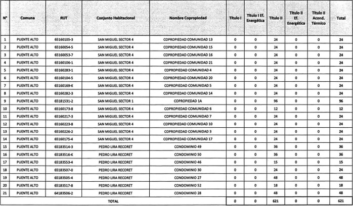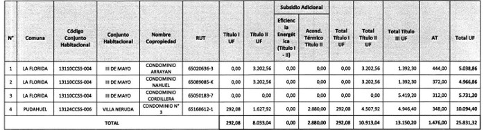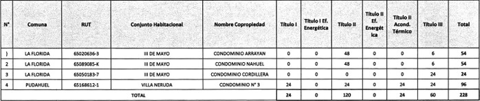 El numeral 1 de la Resolución 2958, Vivienda, publicado el 21.01.2020, modifica la presente norma en el sentido de incorporar el subsidio de eficiencia energética del proyecto correspondiente a la Copropiedad Lote Nº 4 - Blocks 1 y 2, de la Villa Los Jardines, Sector C1, de la comuna de Ñuñoa.