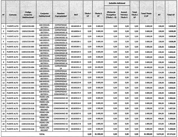El N° 1 de la Resolución 2839 Exenta, Vivienda, publicada el 20.12.2019, modifica el resuelvo N° 3 de la presente norma, con el objeto de incorporar la copropiedad que indica la referida norma, la cual tendrá financiamiento de subsidios y pagos de servicios de asistencia técnica.