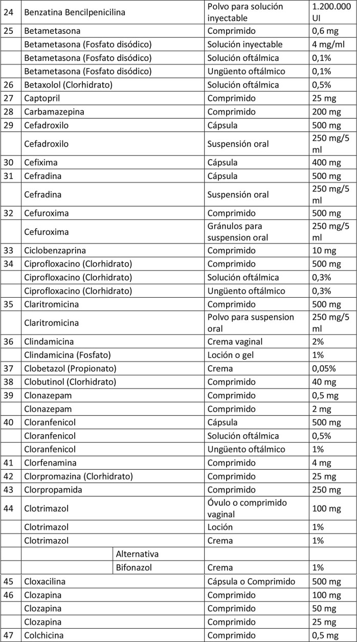 Artículo 1º.- Apruébase el siguiente petitorio farmacéutico para farmacias: