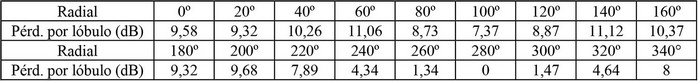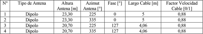 - Arreglo de antenas de acuerdo a la siguiente tabla: