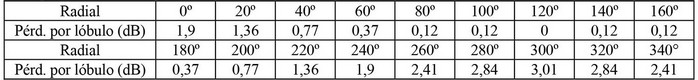 - Diagrama de radiación horizontal de acuerdo a la siguiente tabla:
