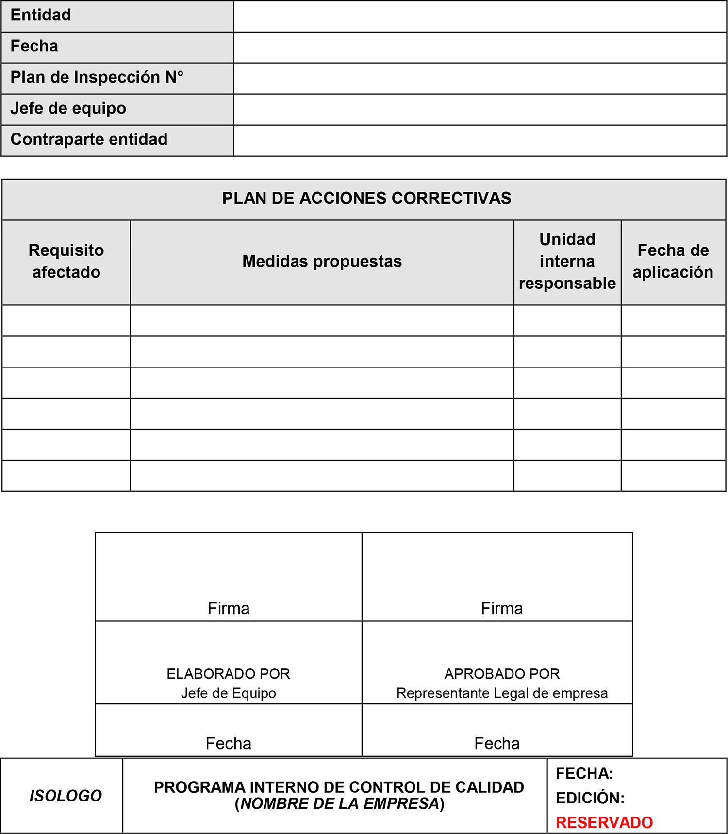 9.4 Los planes de acciones correctivas de las actividades internas de control de calidad desarrolladas por la empresa, serán remitidos dentro de los plazos al Representante de la Empresa en el Aeródromo u a otra entidad superior de la empresa para su aprobación. Adicionalmente, las medidas correctivas aplicadas a las actividades internas, estarán dispuestas para consulta por parte de la Autoridad Aeronáutica.