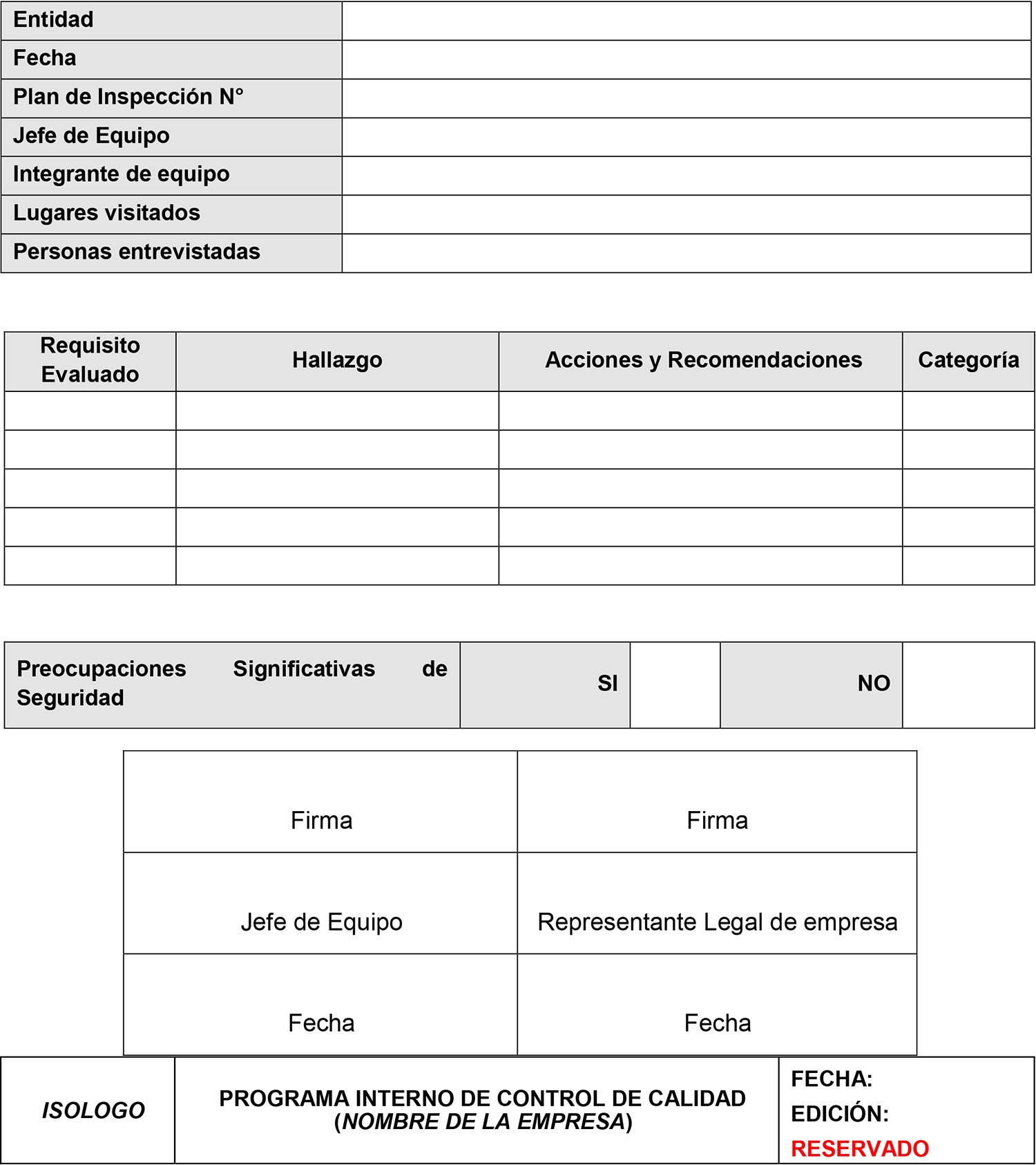 PLAN DE INSPECCIÓN O AUDITORÍA