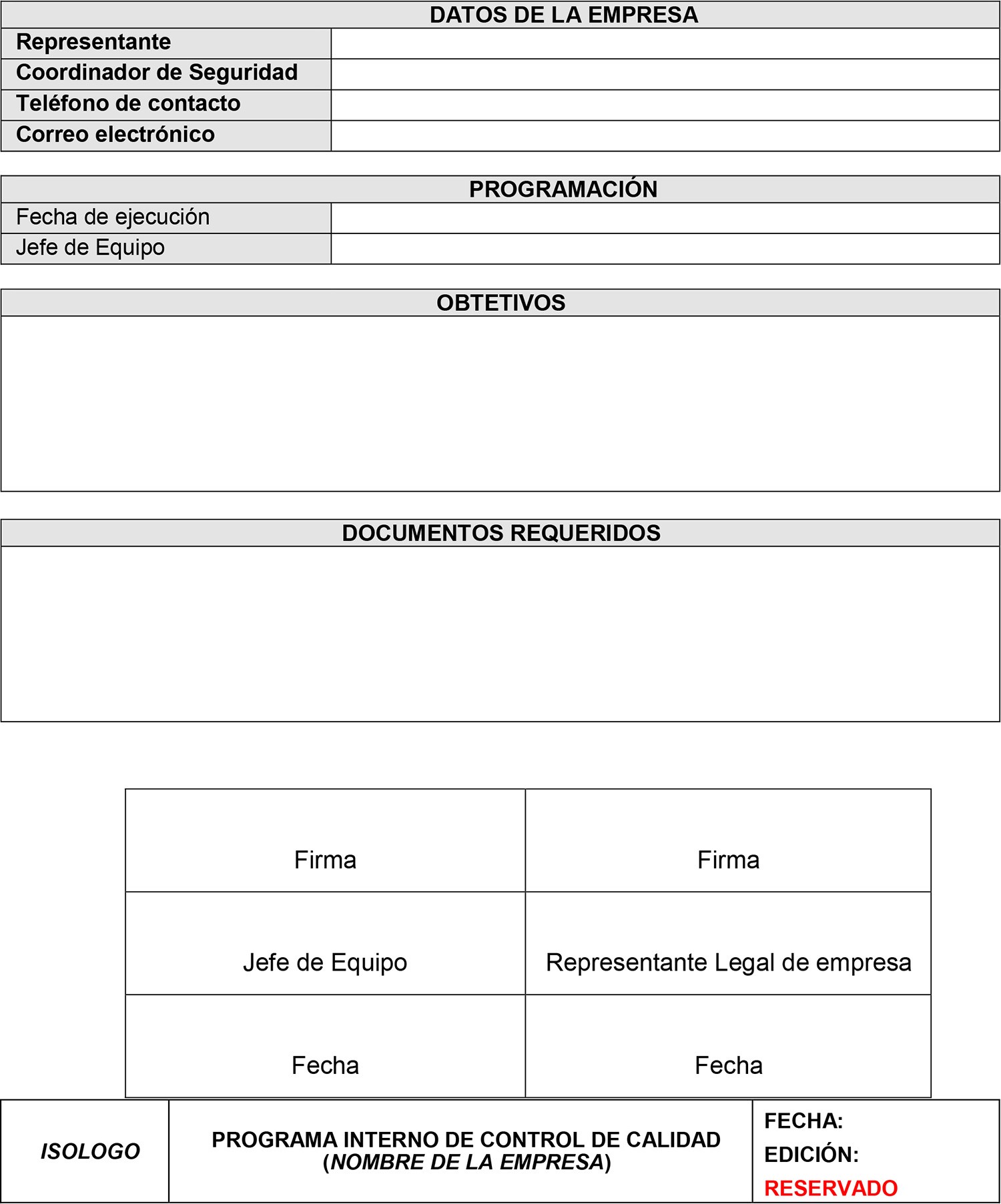 H. Otros registros que la empresa determine necesarios.