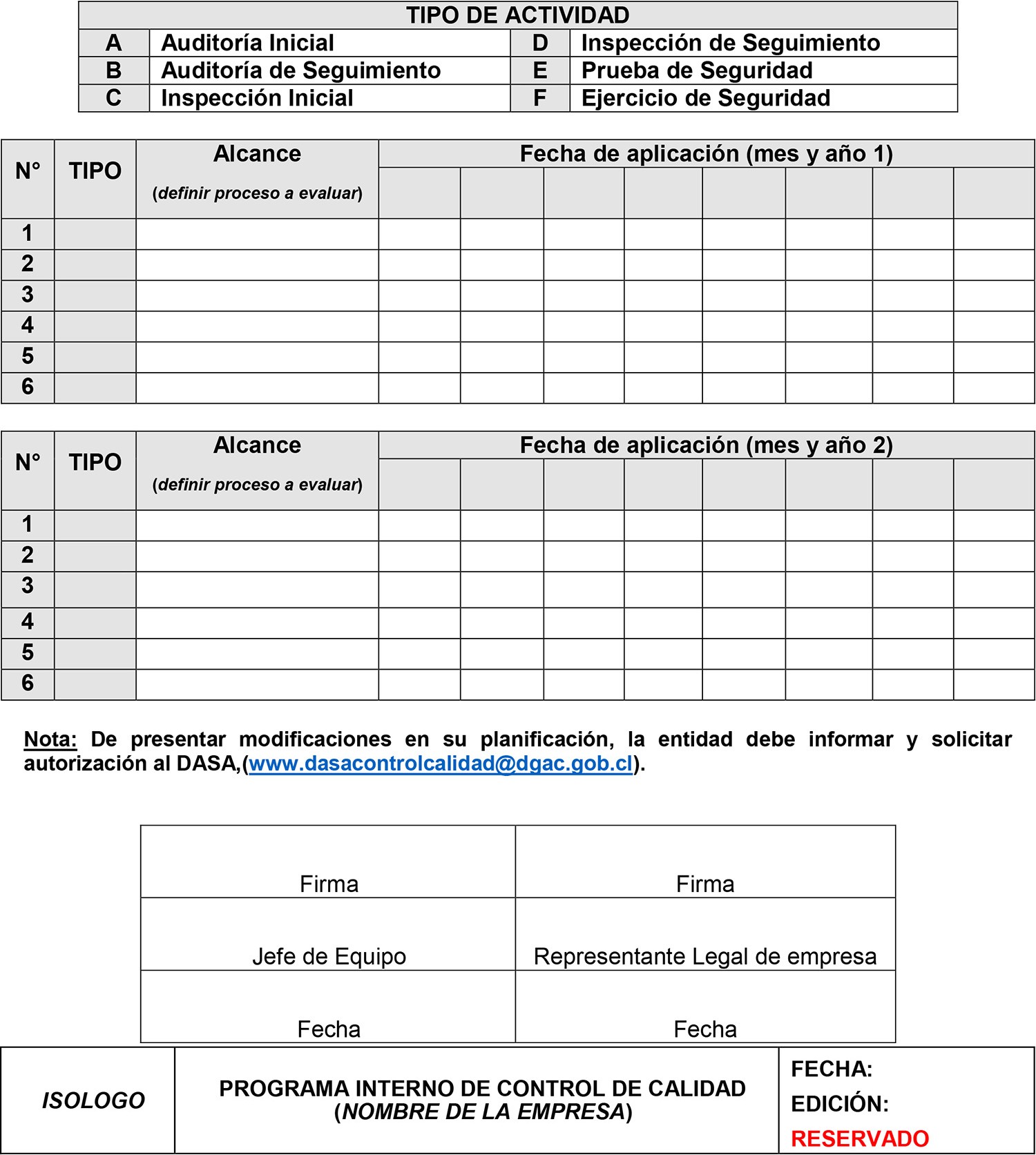 Sin perjuicio de lo anterior, podrá sufrir modificaciones derivadas de los procesos de control de calidad que ejecutan Inspectores Fiscalizadores AVSEC o Inspectores Gubernamentales o conforme a los cambios normativos dispuestos por la DGAC.