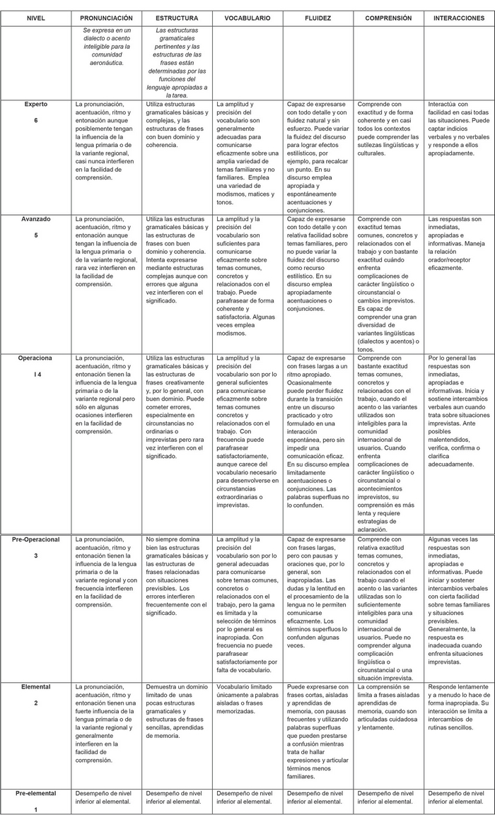 ESCALA DE CALIFICACIÓN DE LA COMPETENCIA LINGÜÍSTICA DE LA OACI