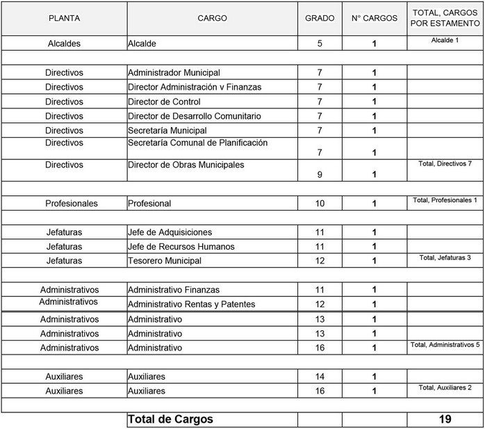 . Artículo 5º. La Planta de Personal de la Ilustre Municipalidad de Primavera, queda en la forma que a continuación se señala: