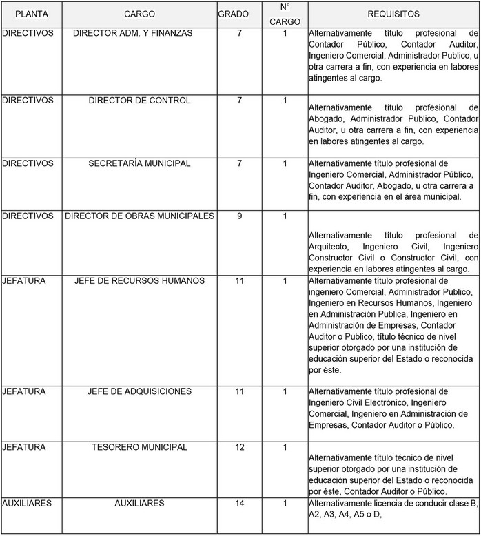 REGLAMENTO QUE MODIFICA LA PLANTA DE PERSONAL DE LA ILUSTRE MUNICIPALIDAD DE PRIMAVERA Y FIJA REQUISITOS ESPECÍFICOS
