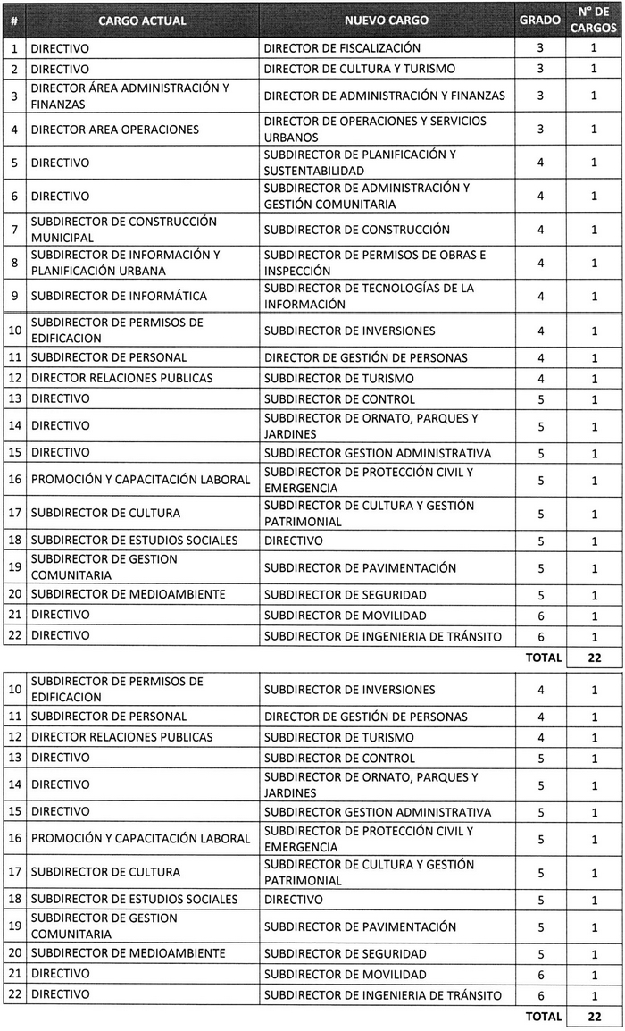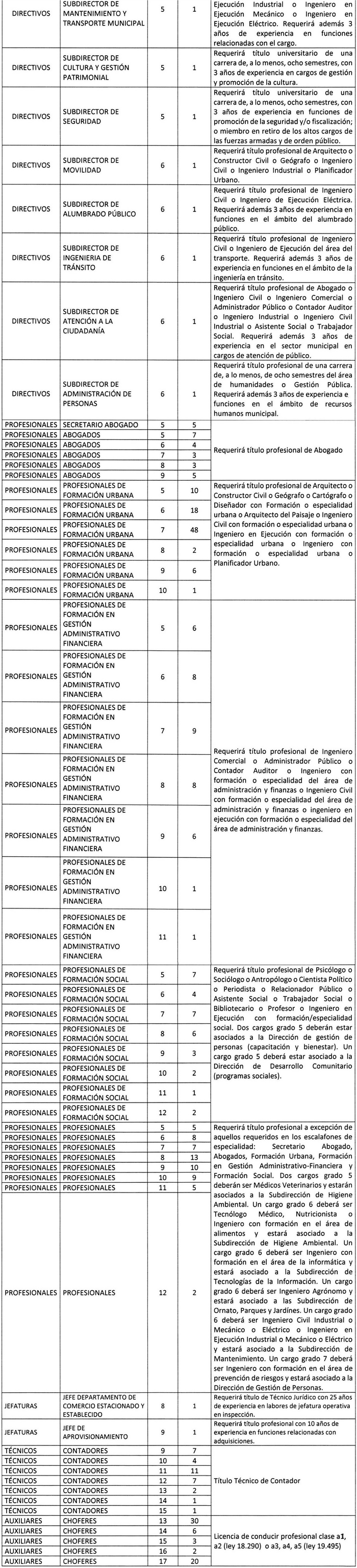 Artículo 3º: Suprímase los cargos de la planta del personal de la Municipalidad de Santiago que se encuentran vacantes y se señalan a continuación: