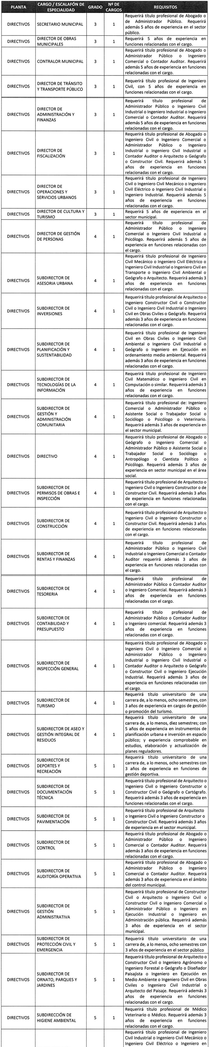 5.4.- Que el artículo 16 bis de la ley Nº 18.695, incorporado por el artículo 1º, Nº 4, de la ley Nº 20.965, del 4 de noviembre de 2016, señala "Existirá un director de seguridad pública en todas aquellas comunas donde lo decida el Concejo Municipal, a proposición del alcalde. Para estos efectos, el alcalde estará facultado para crear dicho cargo y para proveerlo en el momento que decida, de acuerdo a la disponibilidad del presupuesto municipal". En atención a lo anterior, se creó el cargo de Director de Seguridad Pública, planta Directiva, grado 4º, mediante el decreto alcaldicio sección tercera Nº 2.092, de 2017.